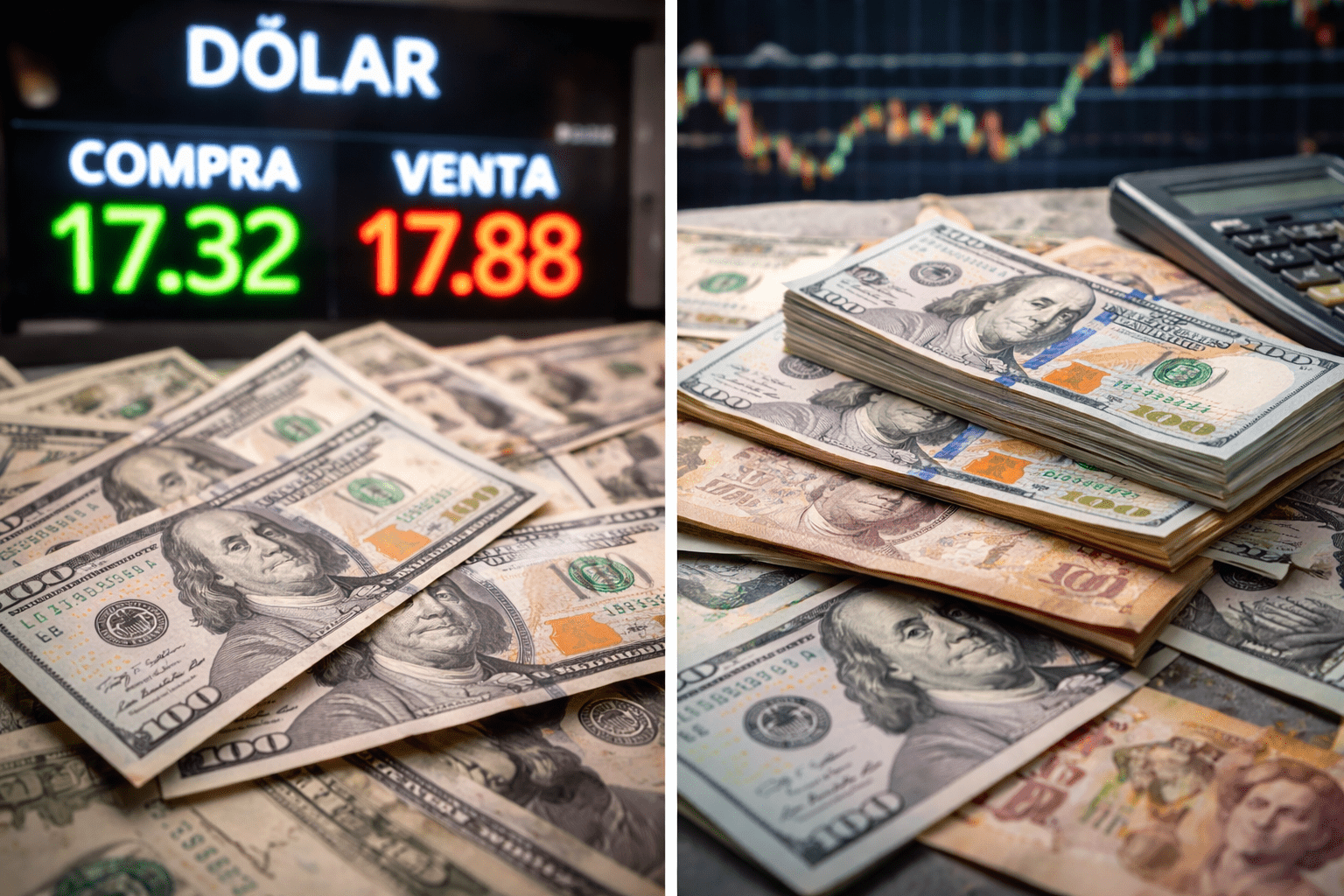 En operaciones bancarias en México, el dólar se ha manejado aproximadamente entre 17.31 pesos a la compra y hasta 17.91 pesos a la venta, dependiendo de la institución financiera.