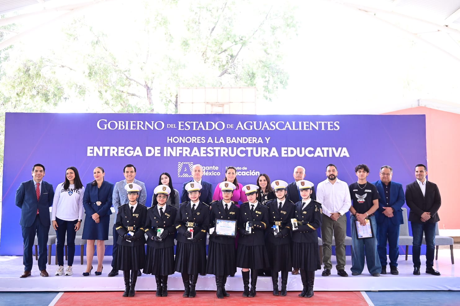 También encabezó la ceremonia de Honores a la Bandera, premió a las y los alumnos con mejor aprovechamiento académico y rifó bicicletas, además de reconocer a las y los estudiantes que conforman la Escolta del plantel, tras lograr el tercer lugar en el Concurso Nacional de Escoltas de los CECyTEs.