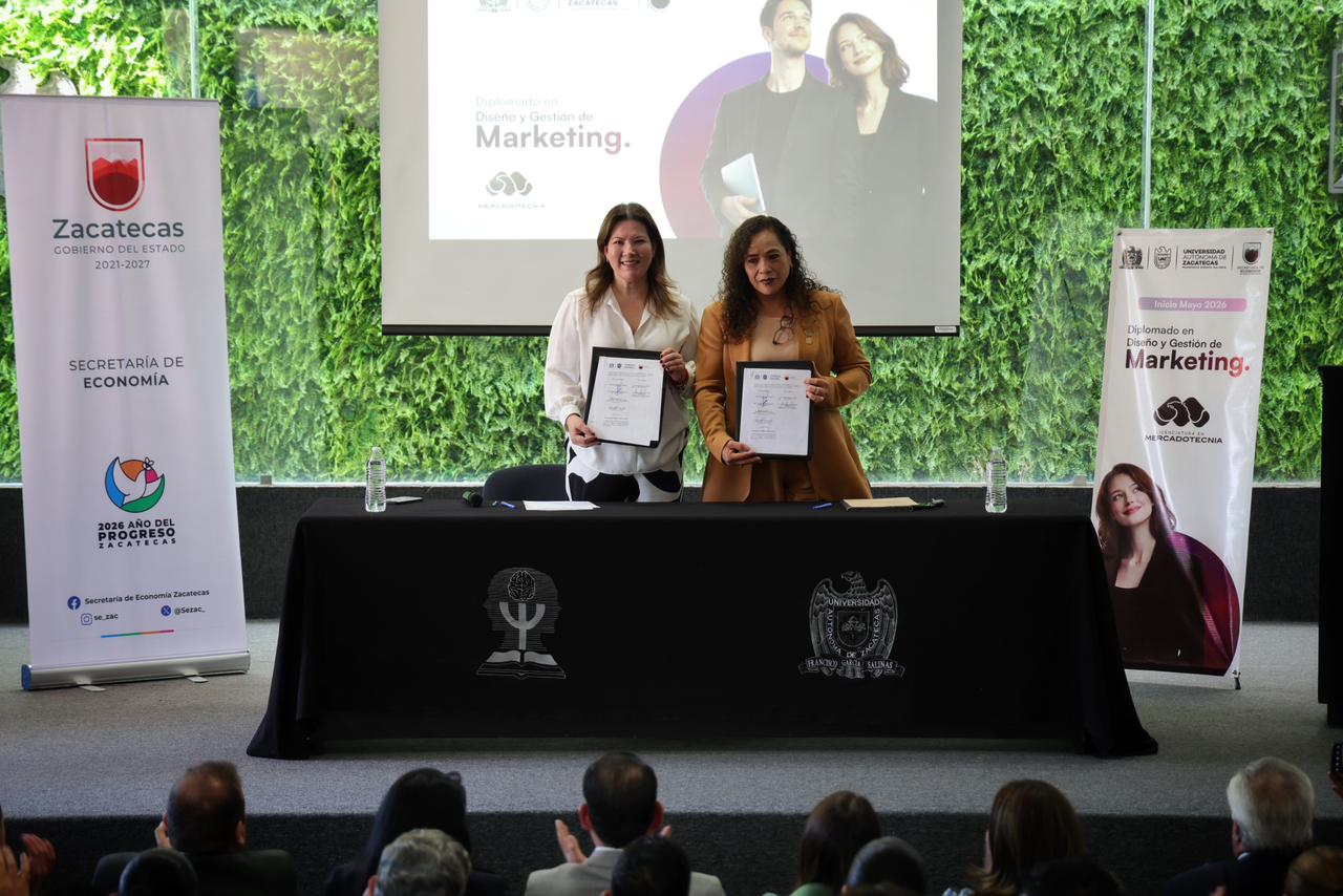 Este convenio permitirá desarrollar estrategias conjuntas de impulso a emprendedores y MiPymes, mediante herramientas de formación y capacitación dirigidas a profesionistas en el ámbito de la mercadotecnia, con el propósito de fortalecer sus capacidades y mejorar la competitividad de los negocios zacatecanos.