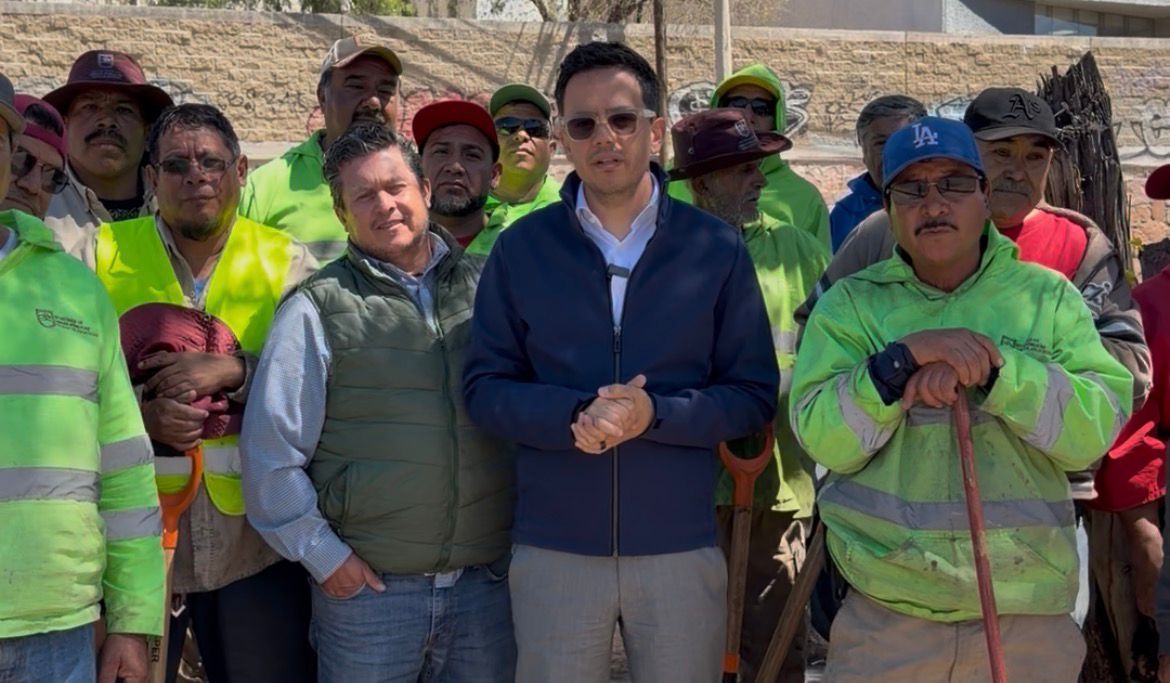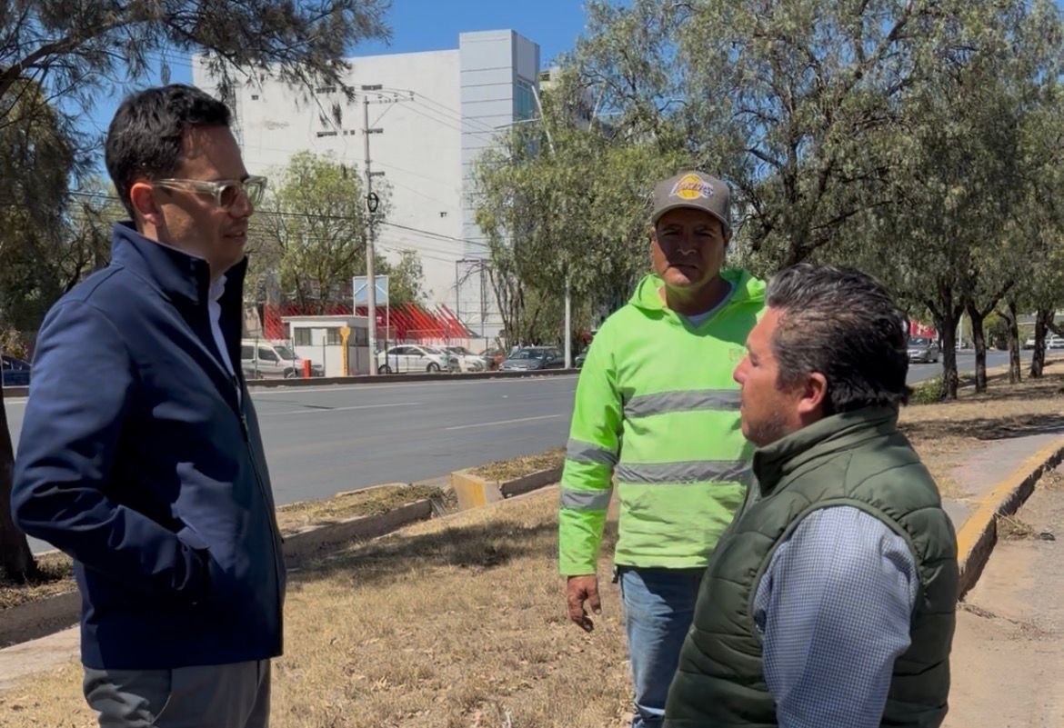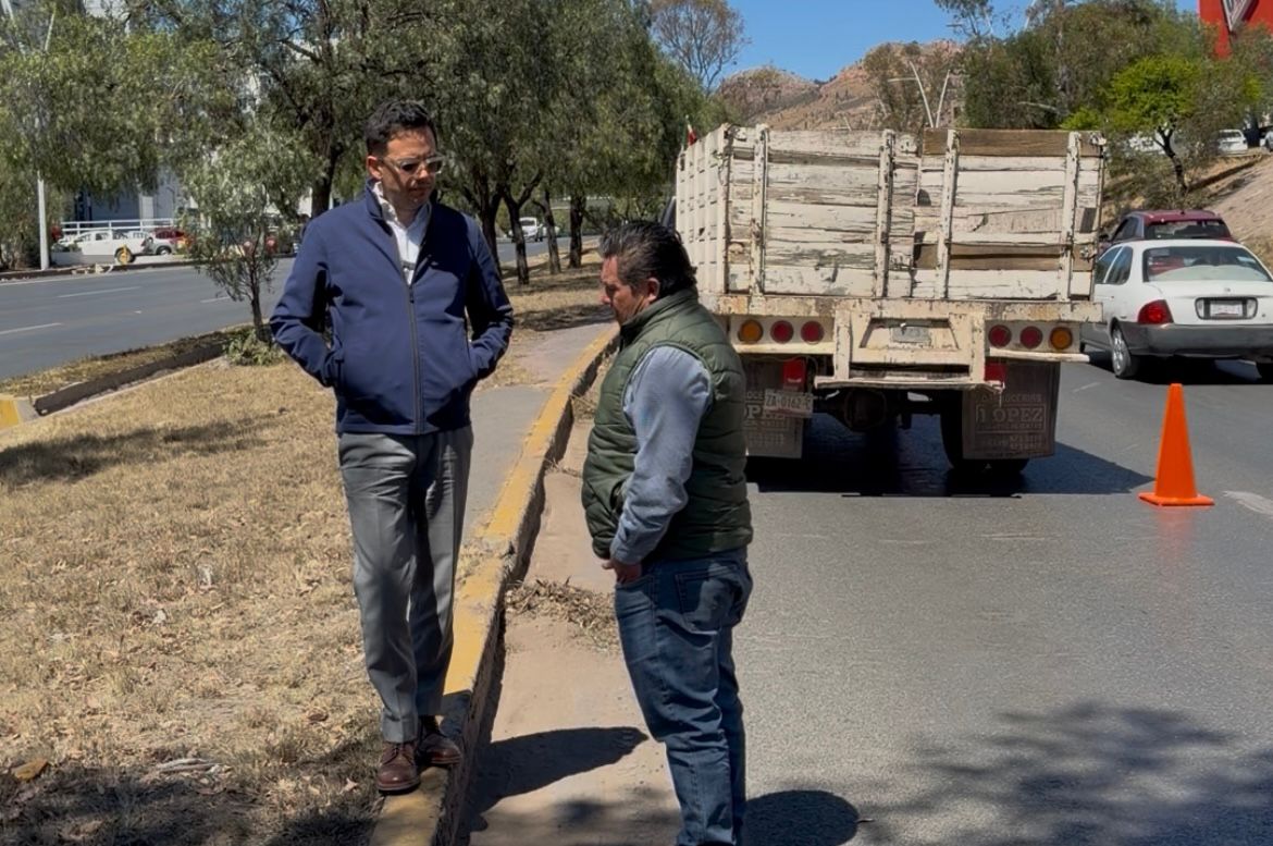 Durante la visita a la zona correspondiente al municipio de Guadalupe, supervisó los trabajos de limpieza y poda de hierba que las cuadrillas de Obras Públicas realizan sobre el camellón central y laterales, como parte de la conservación permanente de la infraestructura urbana.