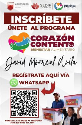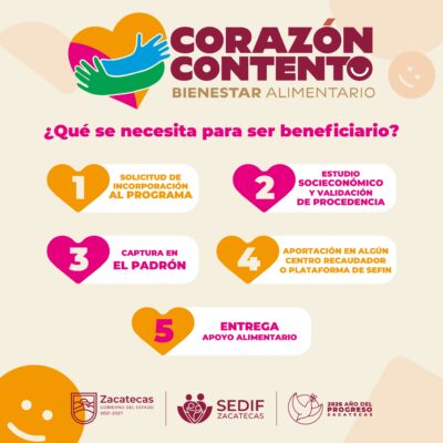 Para fortalecer el programa Corazón Contento, el mandatario estatal dio apertura a que este esquema de apoyo sea universal para quienes deseen adquirir los paquetes alimentarios que se distribuyen a través del Sistema Estatal para el Desarrollo Integral de la Familia (SEDIF) en todo el territorio zacatecano.