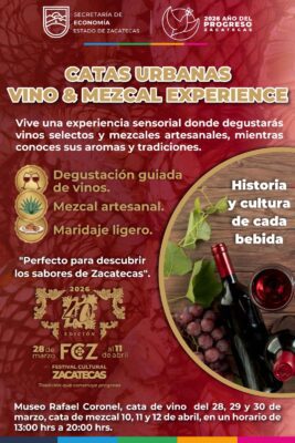 Zacatecas, Zac., 24 de marzo de 2026.- En el marco de la Agenda del Progreso, impulsada por el Gobernador David Monreal Ávila, el sector mezcalero y vinícola del estado se declara listo para recibir a visitantes y locales durante las Catas Urbanas del 40 Festival Cultural Zacatecas 2026.