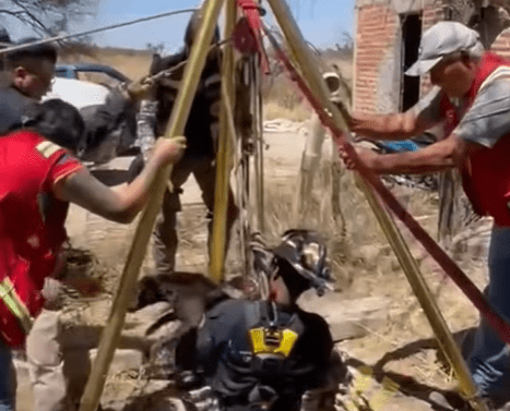 Rescatan con vida a canino atrapado en pozo de 12 metros en Pánfilo Natera