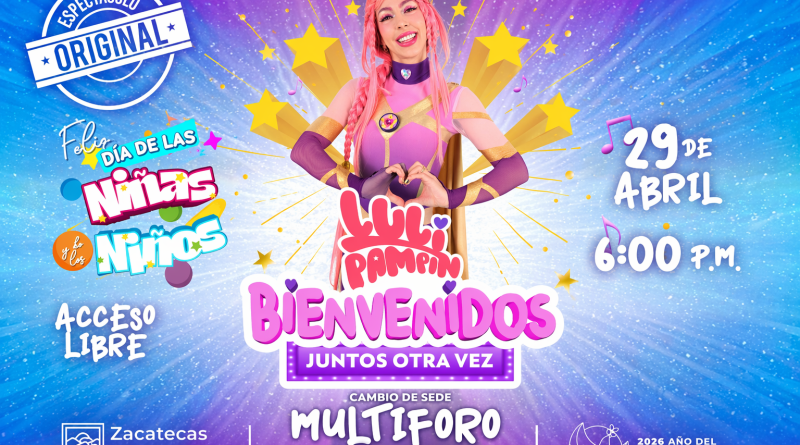 Zacatecas, Zac., 18 de abril de 2026.- En atención a la solicitud de la ciudadanía y con el objetivo de brindar mejores condiciones para el disfrute de las familias, el Gobierno de Zacatecas dio a conocer que el concierto de la reconocida artista infantil Luli Pampin cambia de sede y ahora se llevará a cabo en el Multiforo de la Feria Nacional de Zacatecas (Fenaza).