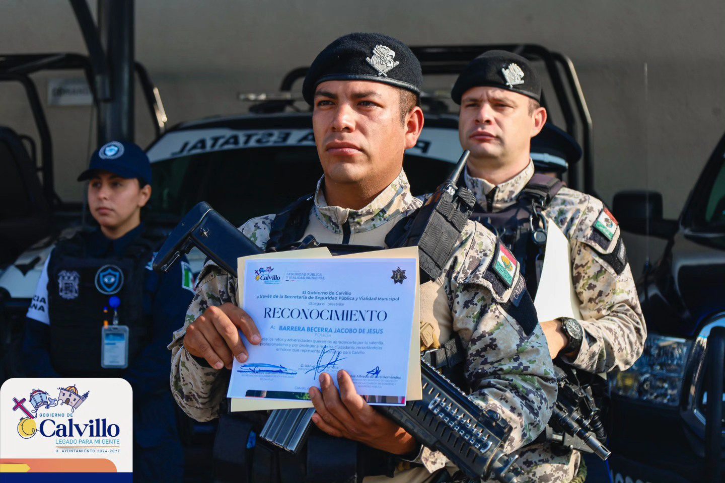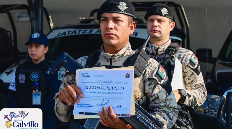 Calvillo, Aguascalientes.– El Gobierno Municipal de Calvillo realizó la entrega de reconocimientos e incentivos a los elementos distinguidos como Policías del Mes de la Secretaría de Seguridad Pública y Vialidad, correspondientes a los meses de febrero y marzo.