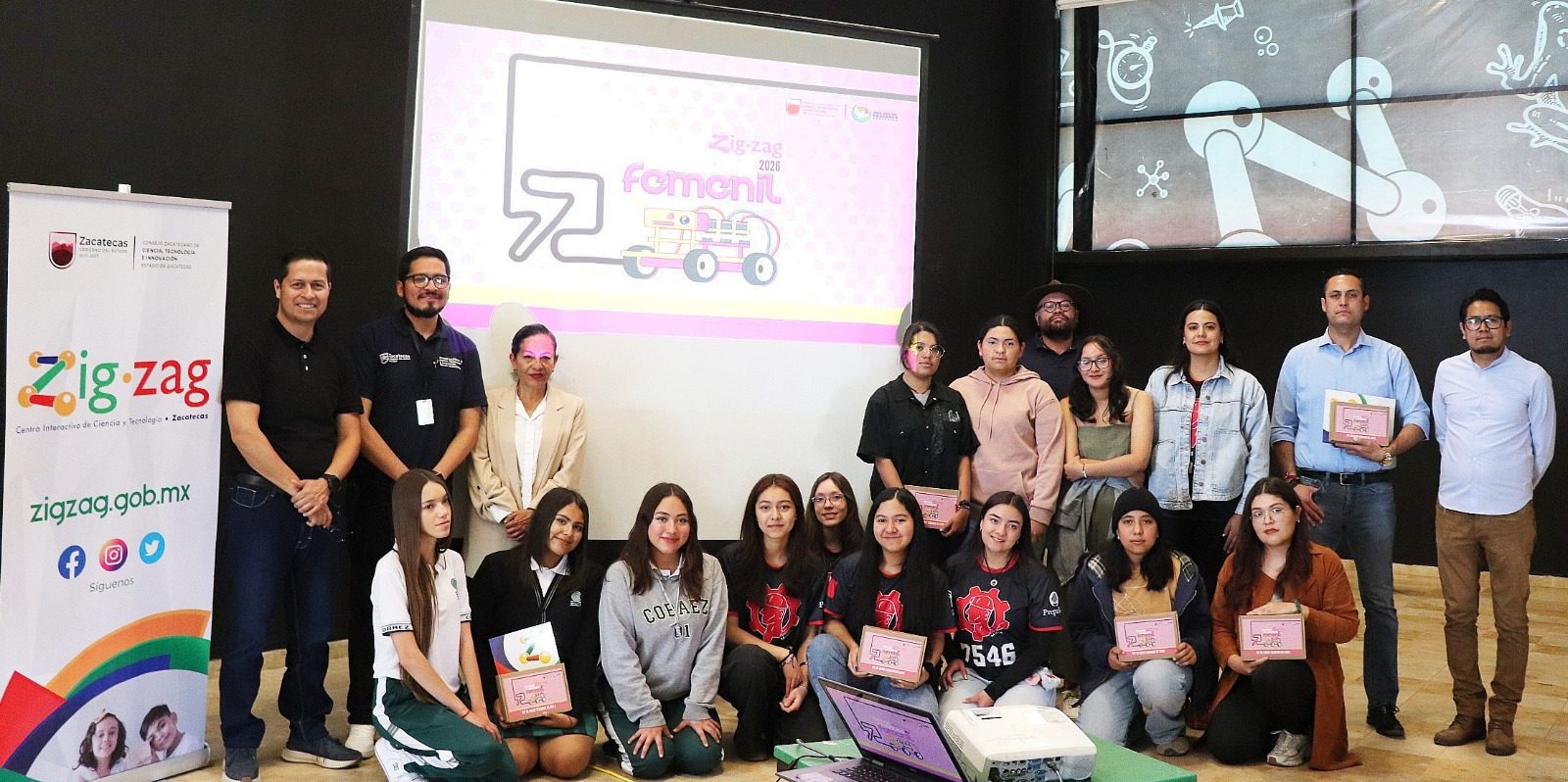 Zacatecas, Zac., 22 de abril de 2026.- Integrantes de los 10 equipos que participarán en el Torneo Zigzag de Robótica Femenil, que organiza el Gobierno de Zacatecas, a través del Centro Interactivo de Ciencia y Tecnología Zigzag, recibieron los kits para el armado de sus robots, así como el reglamento de la competencia.