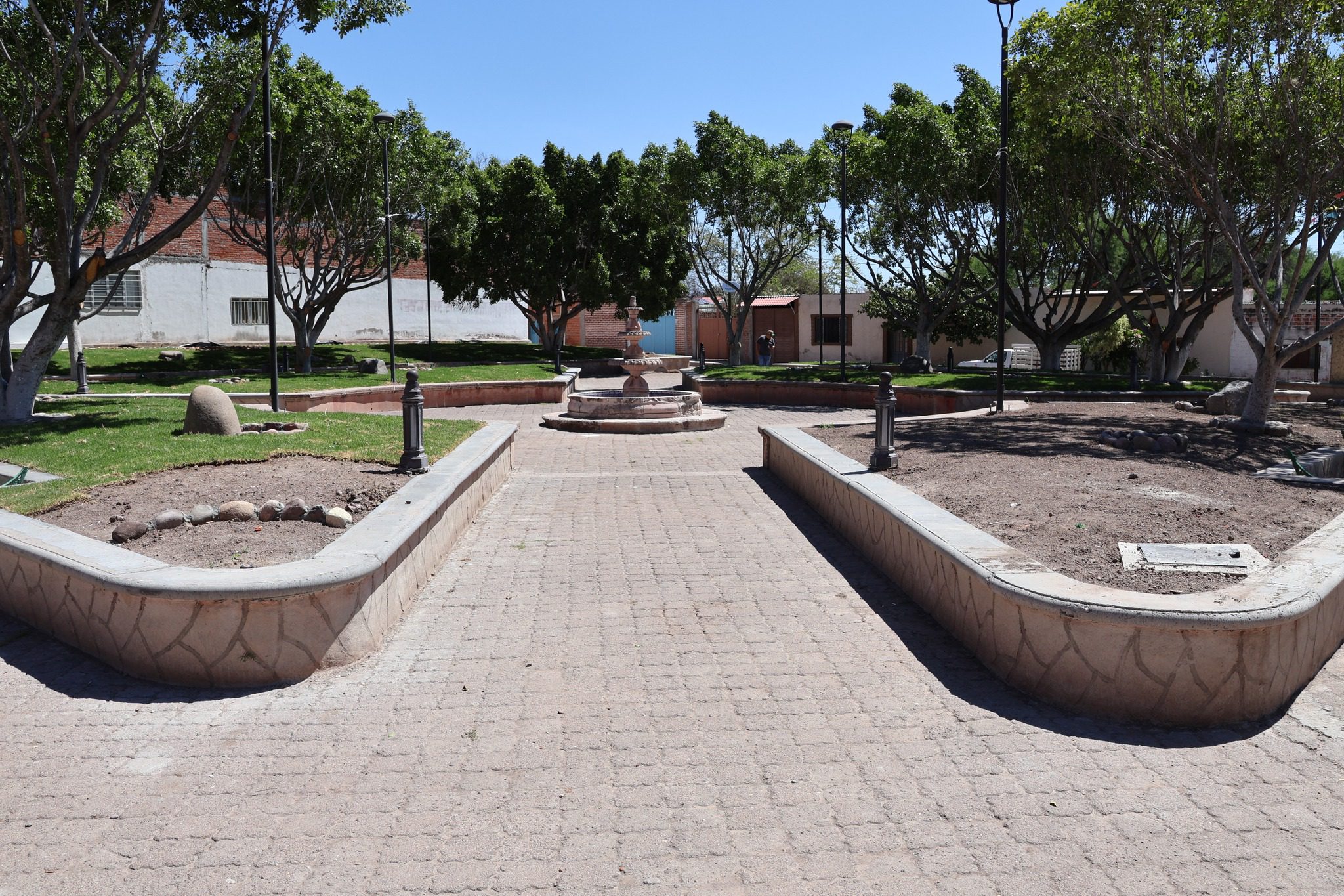Durante un recorrido realizado el pasado 24 de abril, se constató un avance considerable en los trabajos, que incluyen la construcción y rehabilitación de jardineras y bancas, la instalación de iluminación y sistema de riego, la construcción de andadores peatonales, así como la adecuación de rampas para personas con discapacidad. Asimismo, se llevan a cabo labores de preparación de terreno y colocación de pasto natural.